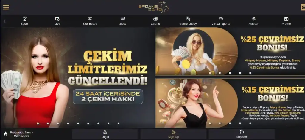 Efsanebahis bahis sitesinin sarı ve koyu renk tercihlerinin birbirlerine eşlik ettiğini görüyoruz. Açılış ekranında karşımıza çıkan ilk konu tasarım olmuyor tabii ki. Üst kısımda örneğin giriş linkine dair bir kısayol belirtilmiştir. Ancak bir sonraki başlığımızı buna ayırmak isteriz. Dolayısıyla giriş konusunu şimdilik es geçelim. Fakat birçok kişinin giriş meselesi söz konusu olduğunda sorun yaşadığını biliyoruz.